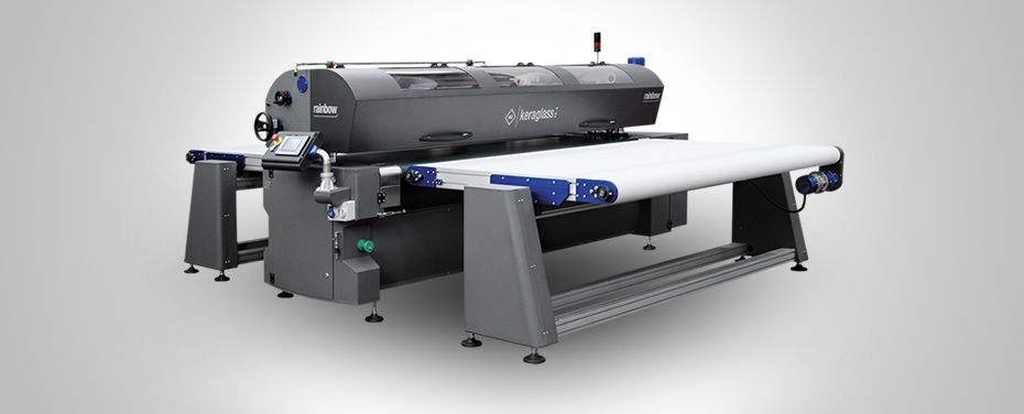 Máy lăn sơn sơn trên kính. Độ cứng khác nhau của dây cao su quấn quanh con lăn, và hoàn thiện cuối cùng khác nhau của bề mặt cho phép tăng số lượng và độ dày của mực, và do đó đạt được một nhiều hiệu ứng, từ hiệu ứng Satine bán trong suốt, đến hiệu ứng bao phủ, cho đến bề mặt hoàn toàn mờ. Hiệu quả Satine có thể so sánh với phun cát và axit ăn mòn, với lợi thế là bề mặt dễ dàng làm sạch hơn.